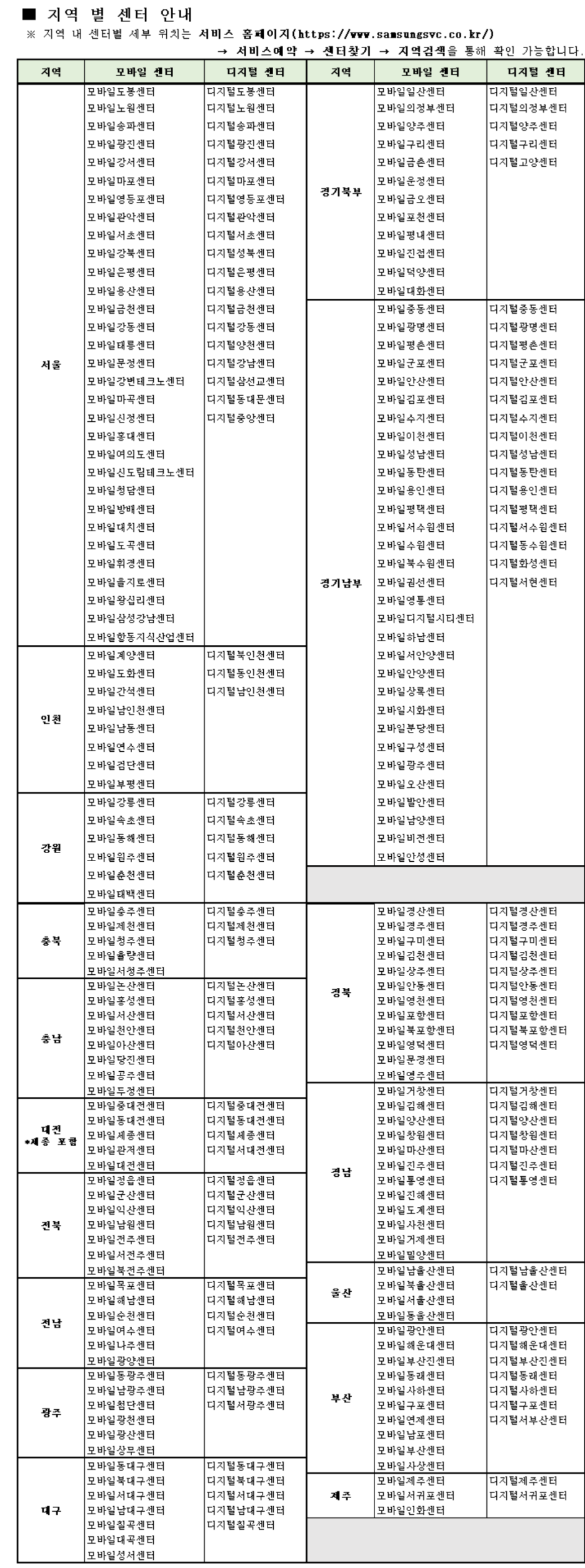 -서울 / 인천 / 경기북부 / 경기남부 / 강원 / 충북 / 충남 / 대전 / 광주 / 전북 / 전남 / 대구 / 경북 / 경남 / 울산 / 부산 / 제주