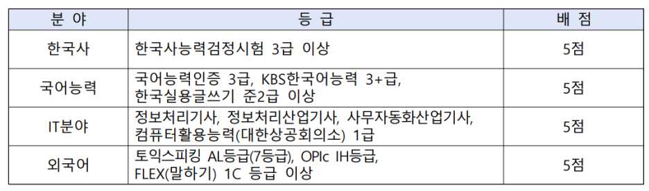자격증 가점표