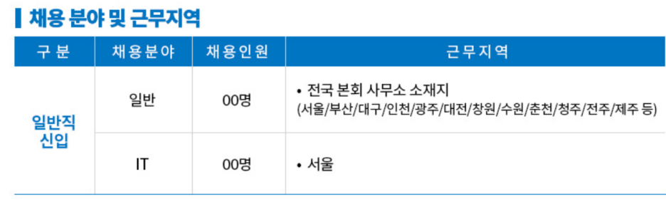 주 2) 최종합격자는 입사지원 시 선택한 희망 근무지역 우선배치를 원칙으로 함