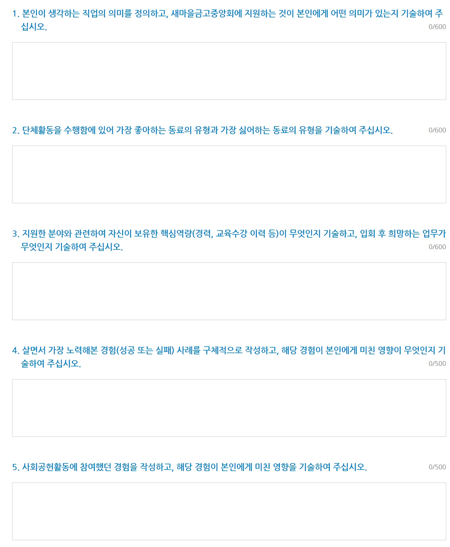 새마을금고중앙회에 지원한 이유를 작성