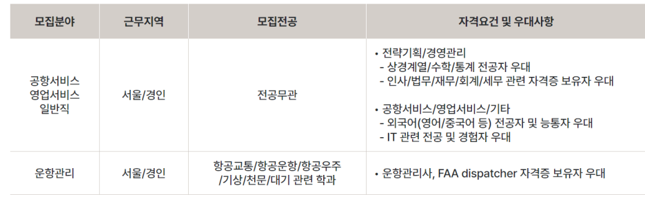운항, 캐빈, 공항, 정비 등 현장 지원/관리