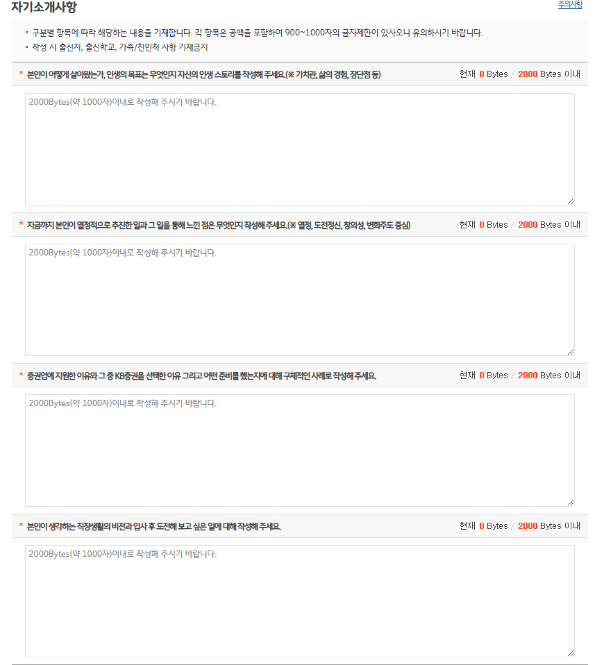 ※ 출신지,학교,가족관계 등에 대해서는 작성이 금지되기 때문에 주의 필요