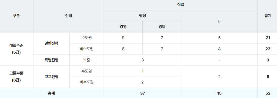 행정: 경영(경영학, 재무관리, 회계학), 경제(미시/거시 경제학, 국제경제학, 화폐금융론) 중 선택, NCS 직업기초