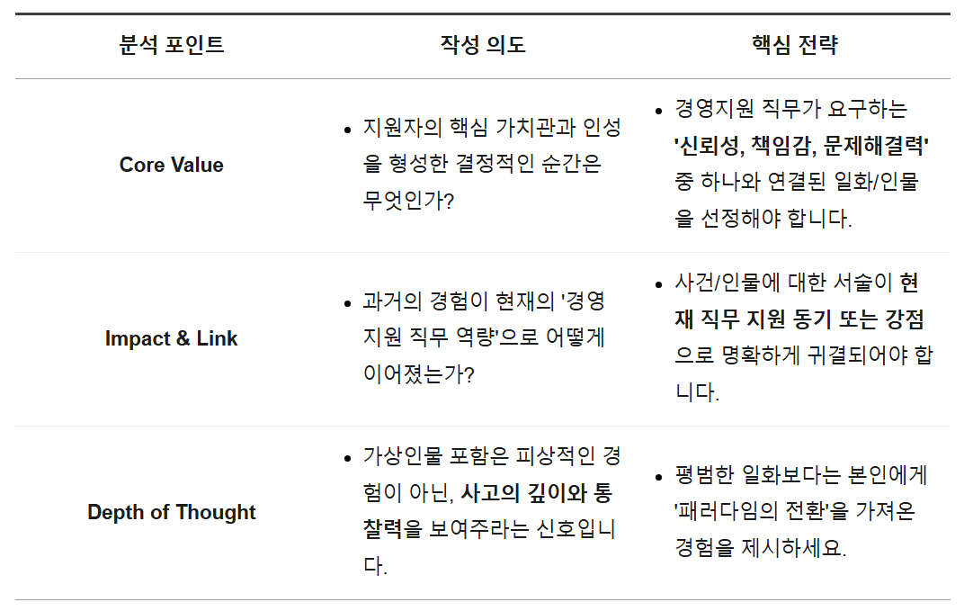🎯 작성 요령: '사건/인물'을 통해 '직무 적합성'을 증명하세요.